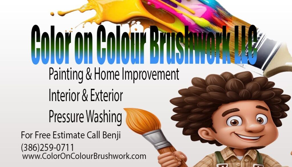 Color on Colour Brushwork Painting delivers meticulous interior and exterior painting services, combining superior materials with skilled artisanship to enhance your home’s beauty and durability. Our commitment to detail and customer satisfaction makes us the trusted choice for transforming your living spaces, serving the Central Florida area Volusia County, Lake County, Seminole County, Orange County, Osceola County, Brevard County, Polk County, Marion County, Alachua County, Putnam County and Flagler County.